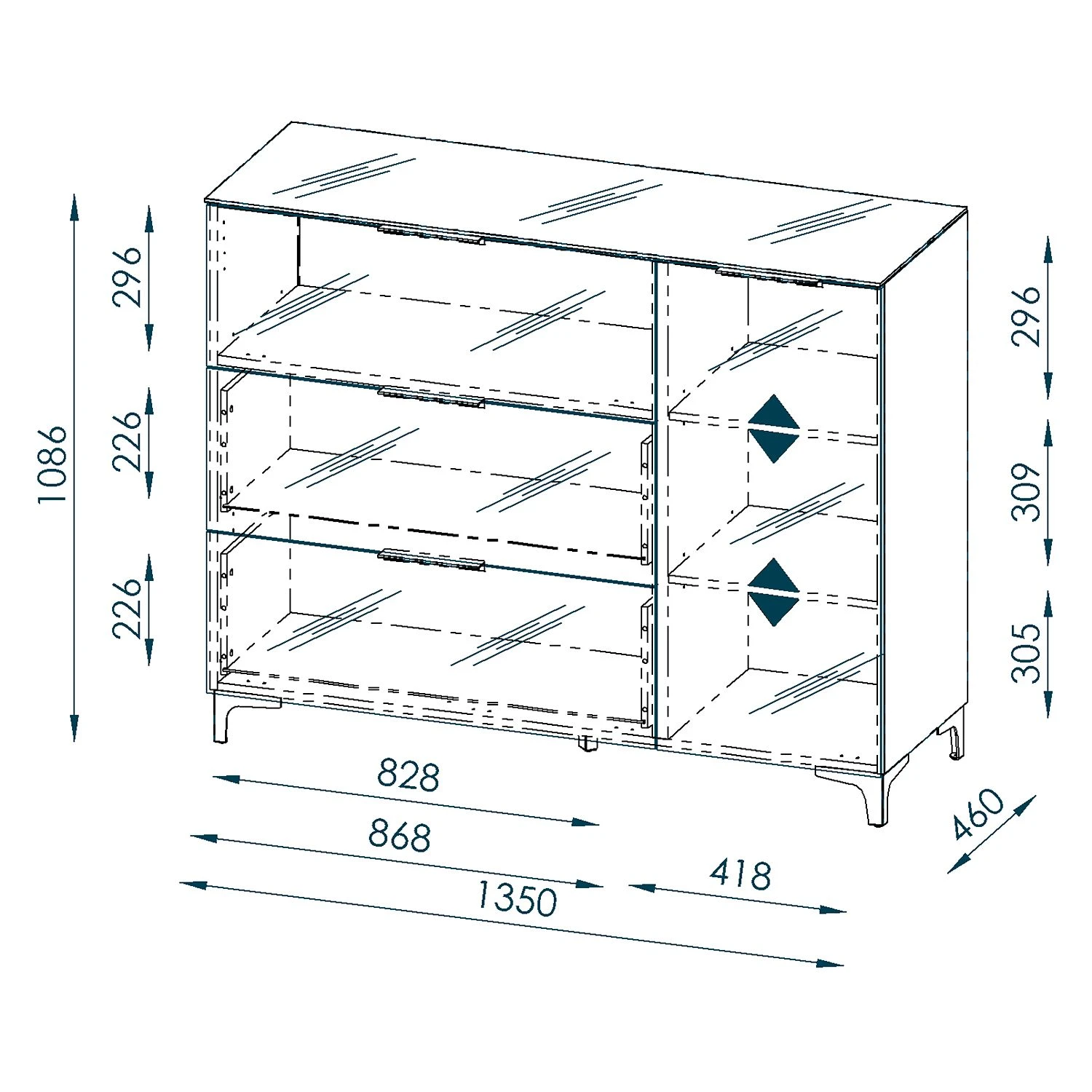 - Innenmaße Schubladen: BxHxT: je 82,9 x 22,7 x 33,4 cm