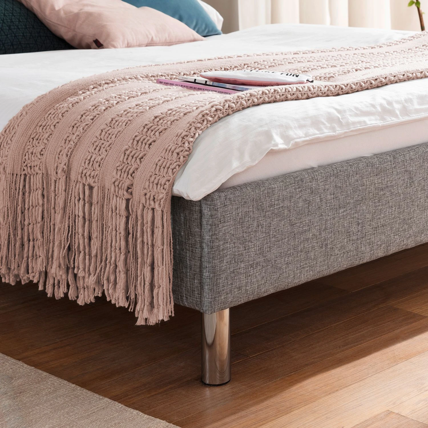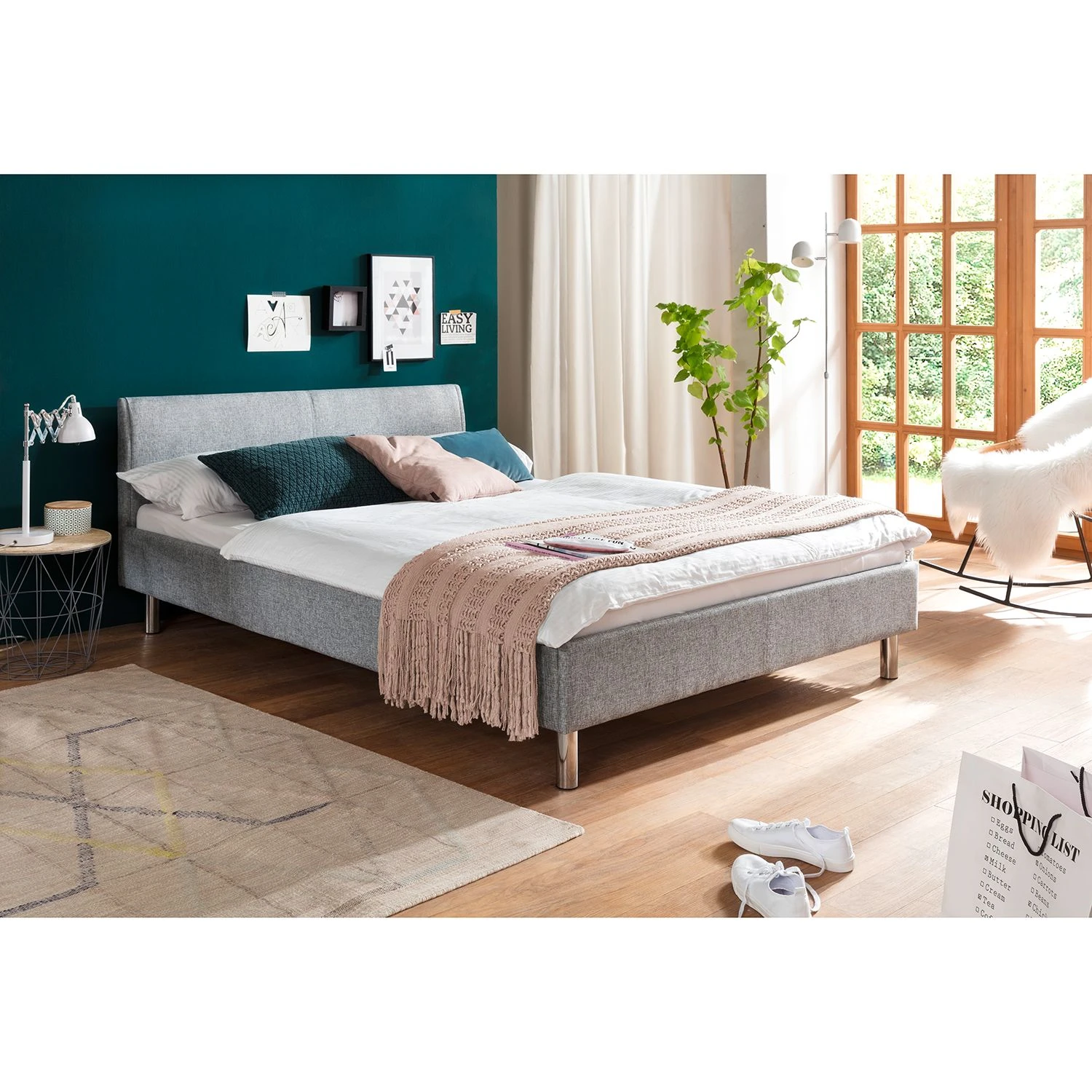 - Lieferumfang: Polsterbett ohne Lattenrost, Matratze & Dekoration