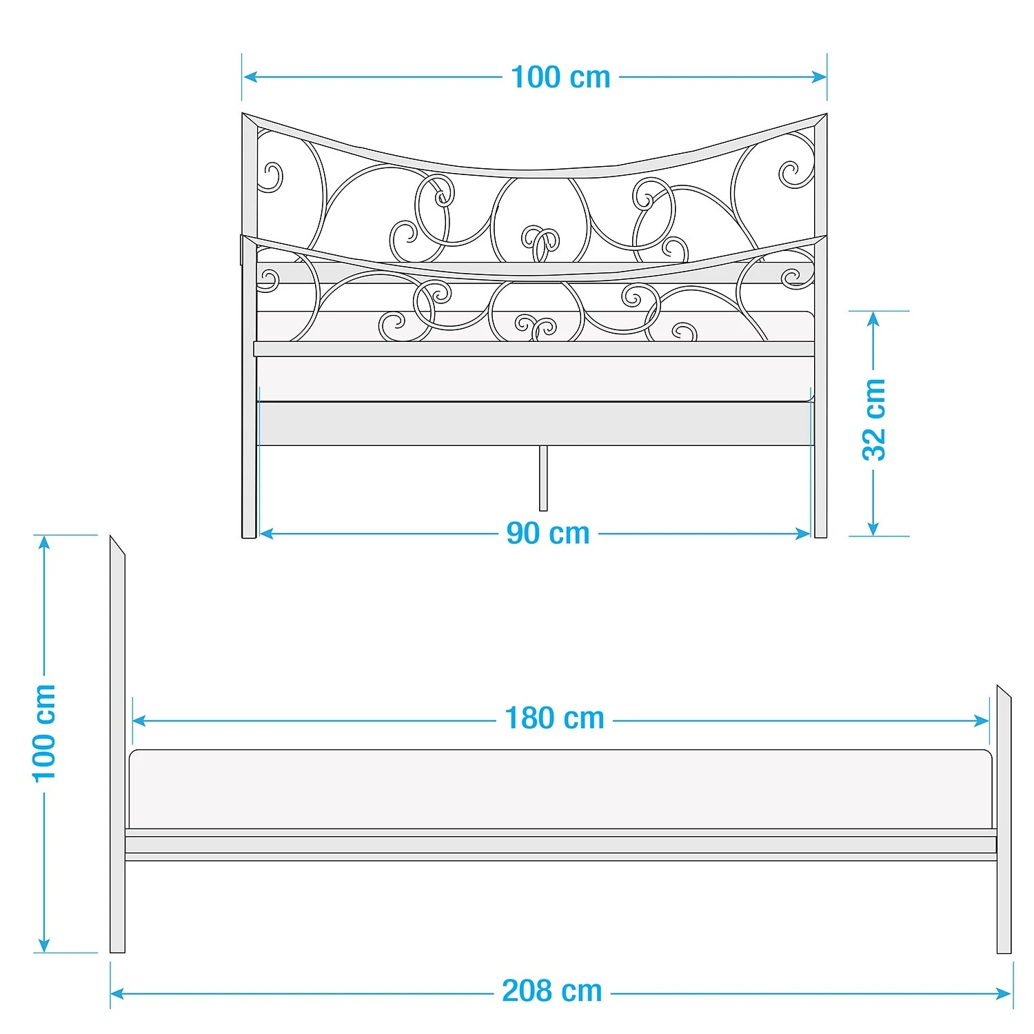 - Liegefläche: 90 x 200cm