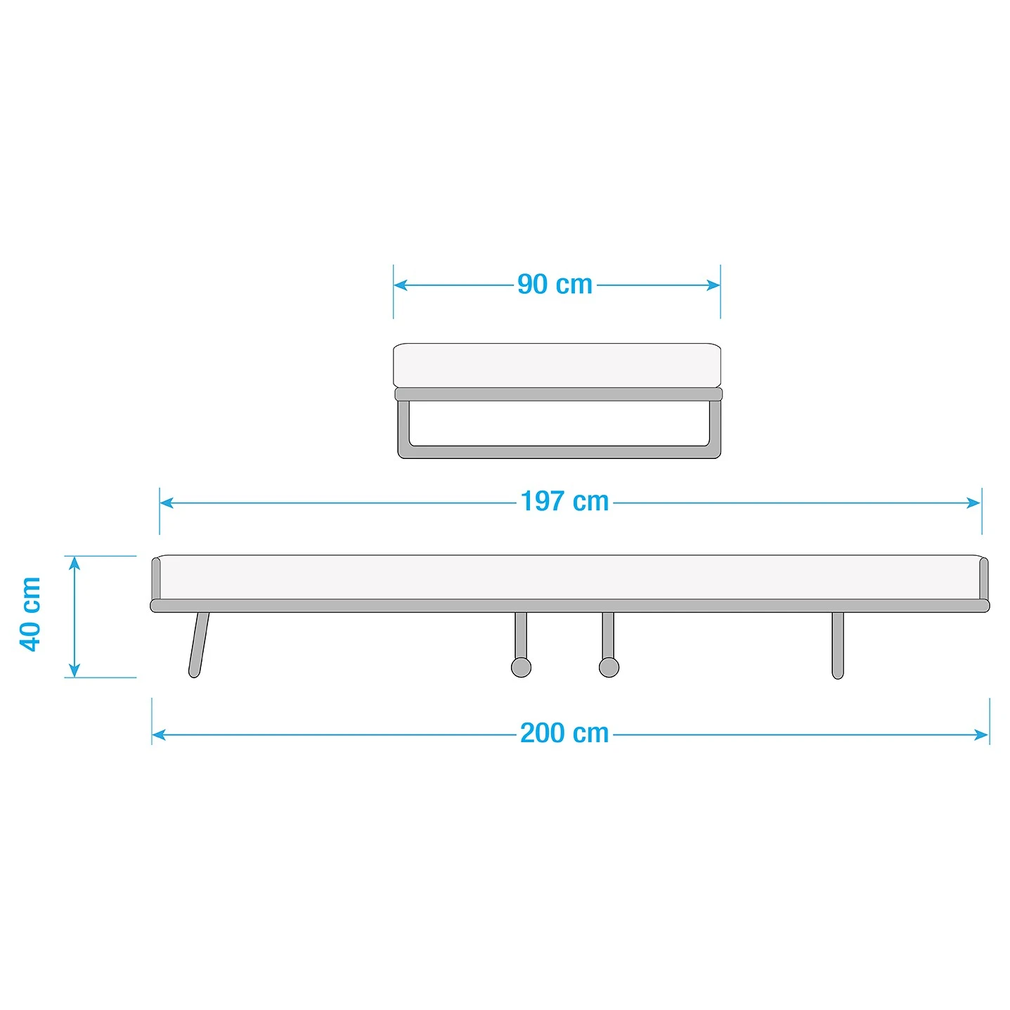 - Liegefläche: 90 x 197 cm