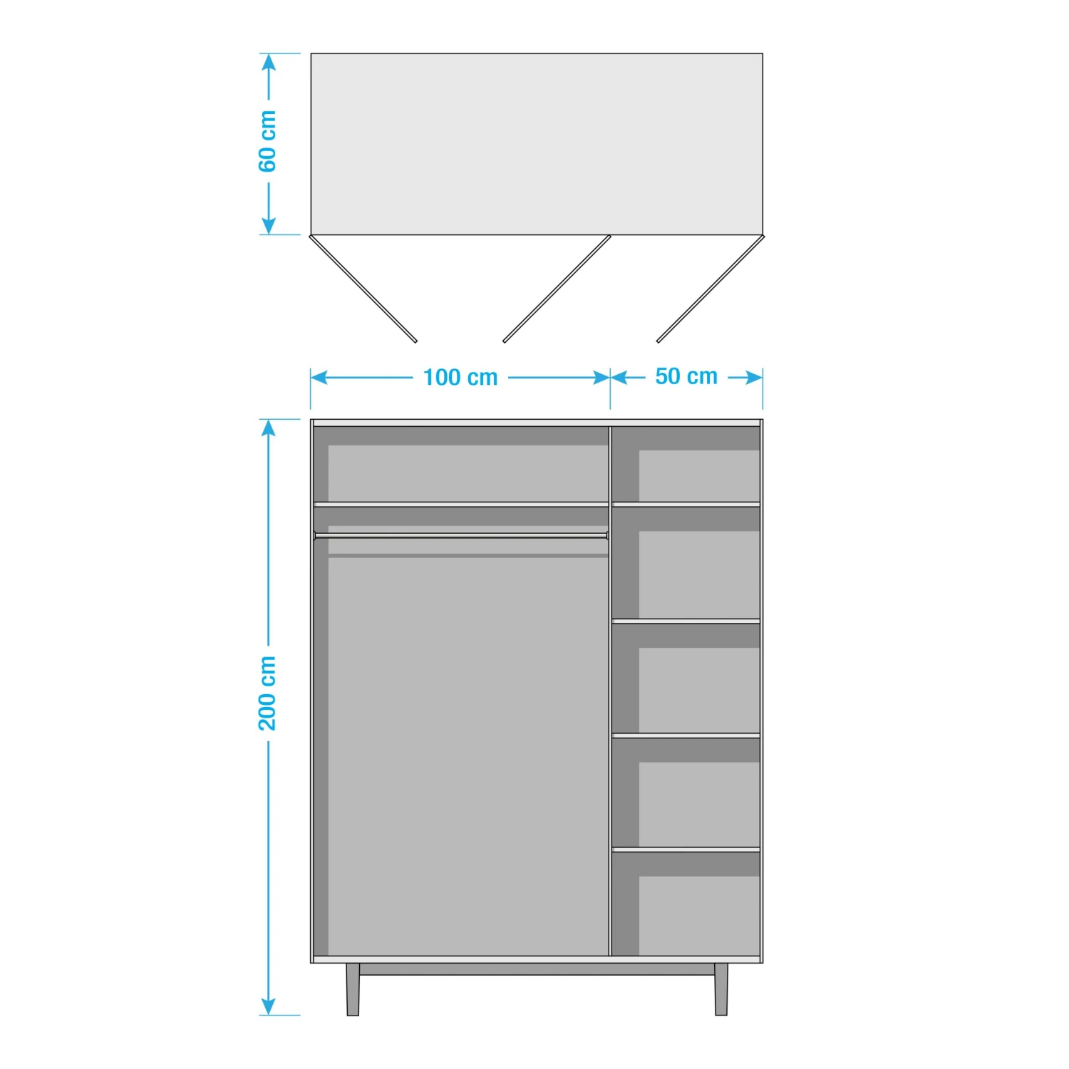 - Inneneinteilung: 100/50 cm