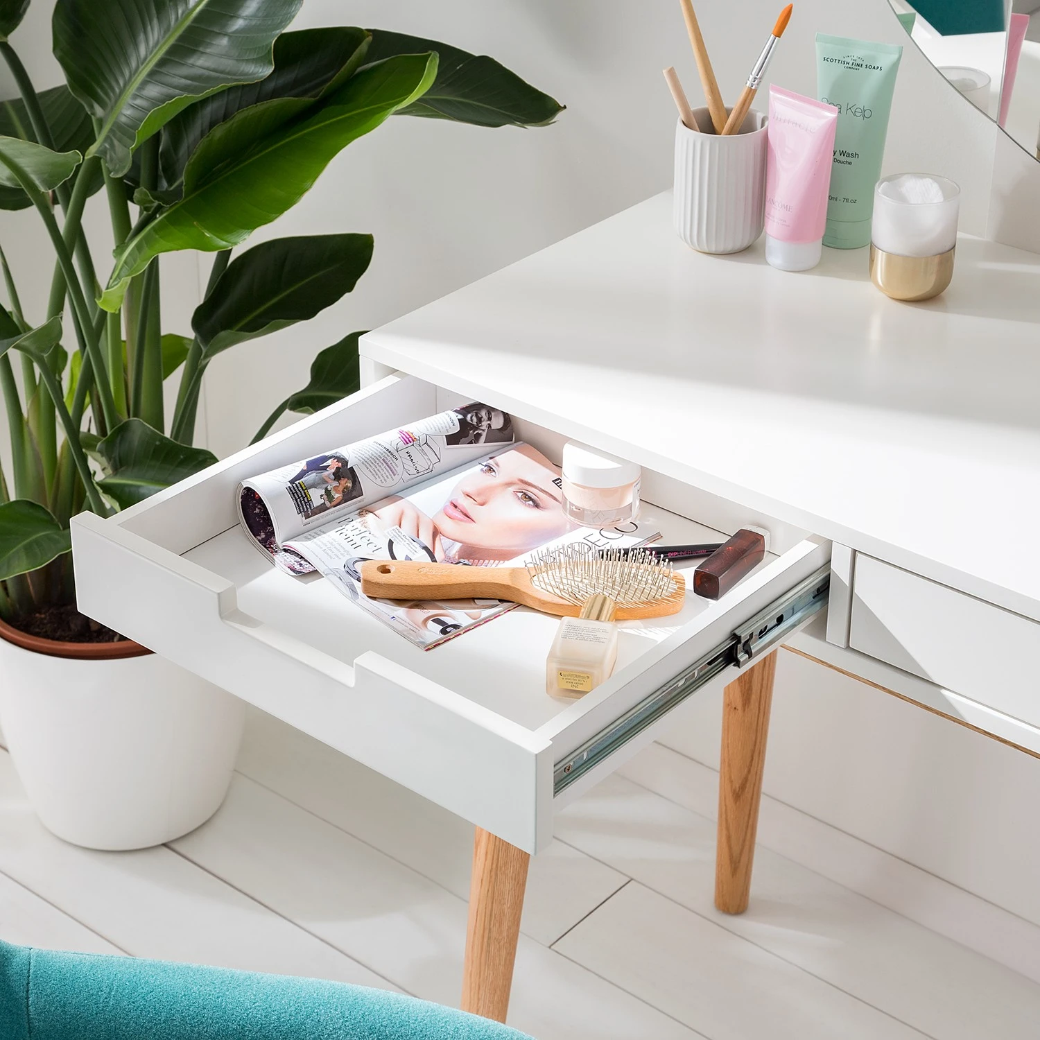 - Lieferumfang: Schminktisch ohne Dekoration