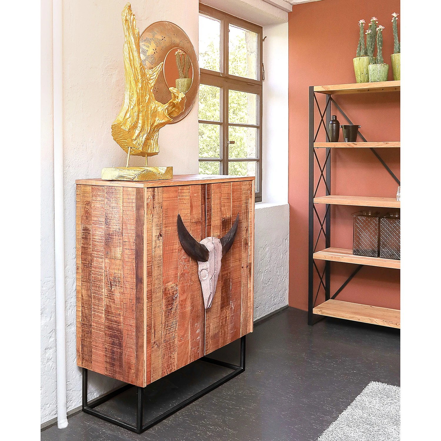 - Front & Korpus: Massivholz Mango, gebeizt & lackiert