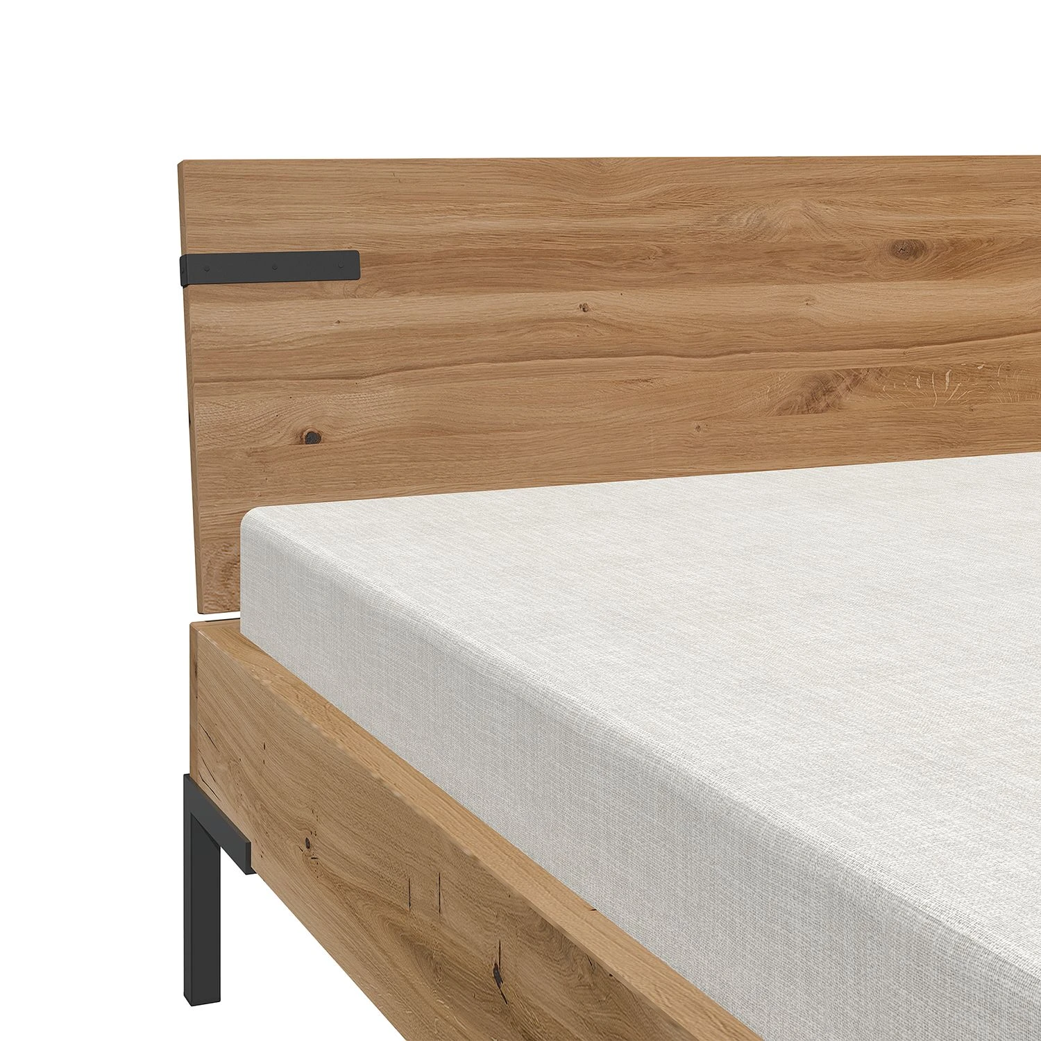 - Kopfteil: Wildeiche massiv, geölt mit Zierwinkel Metall, schwarz