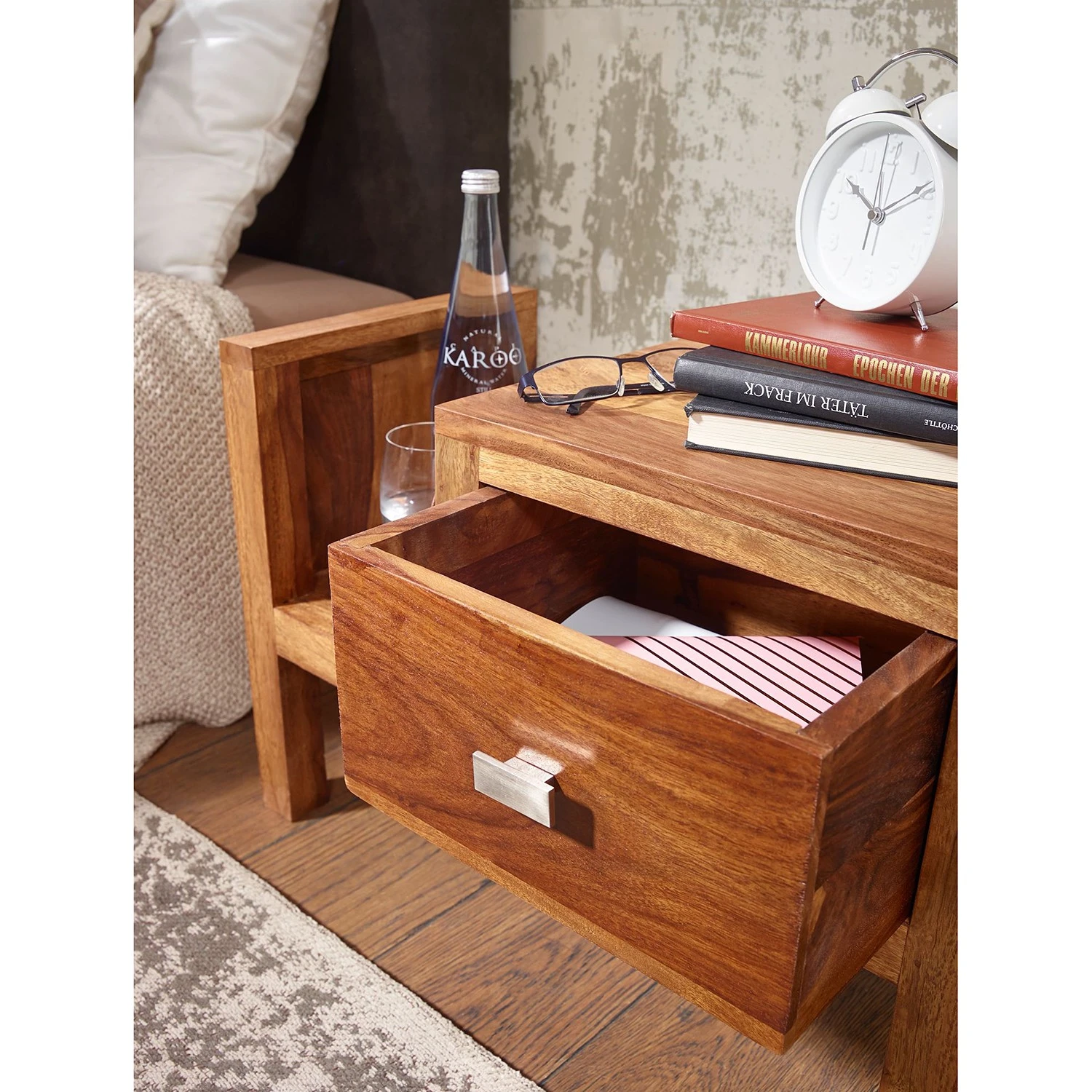 - Lieferumfang: Nachtkommode ohne Dekoration