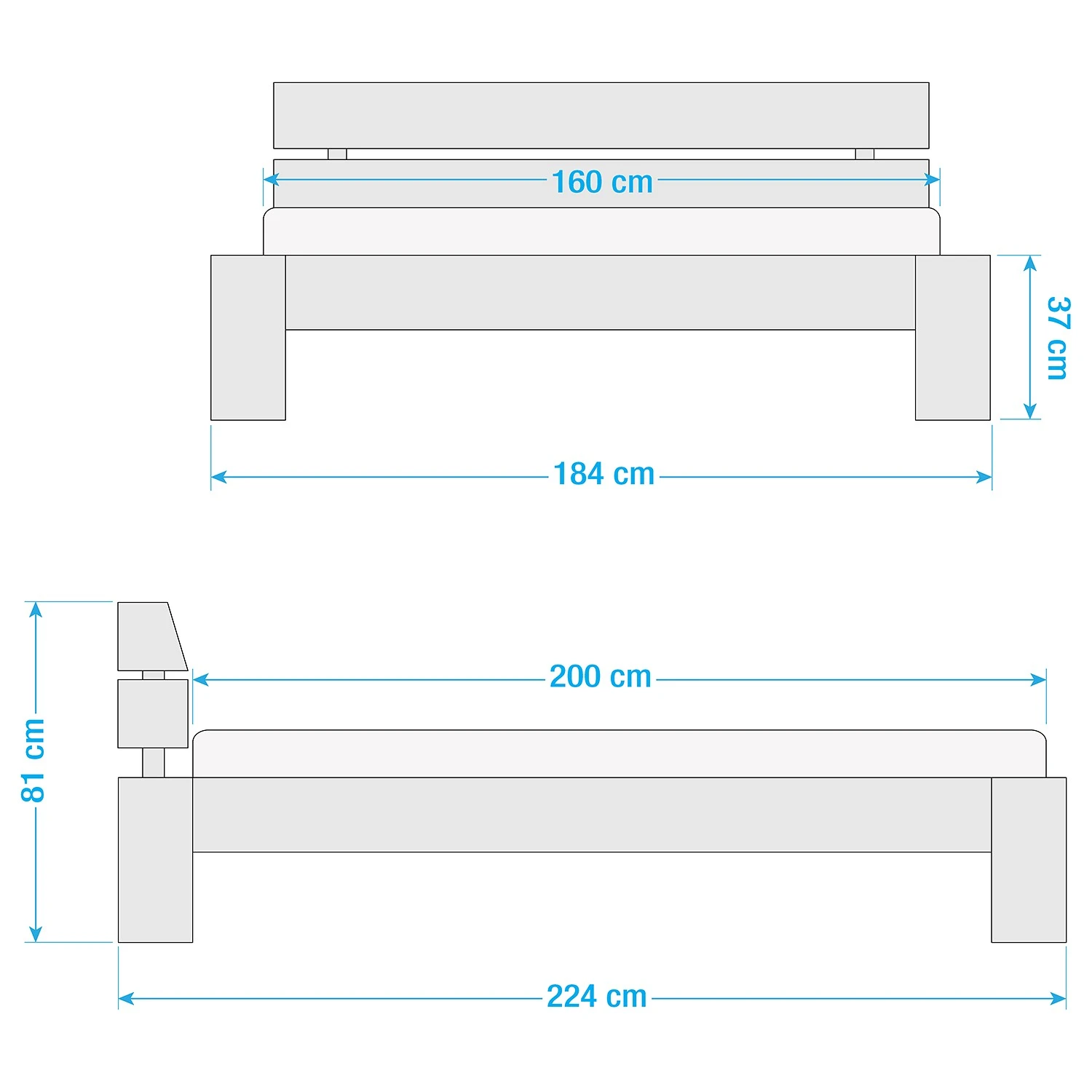 - Bettkantenhöhe: 37 cm