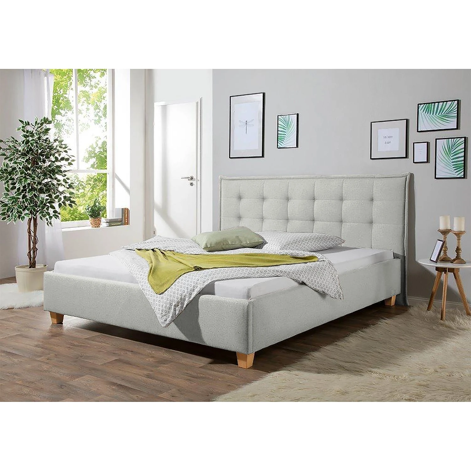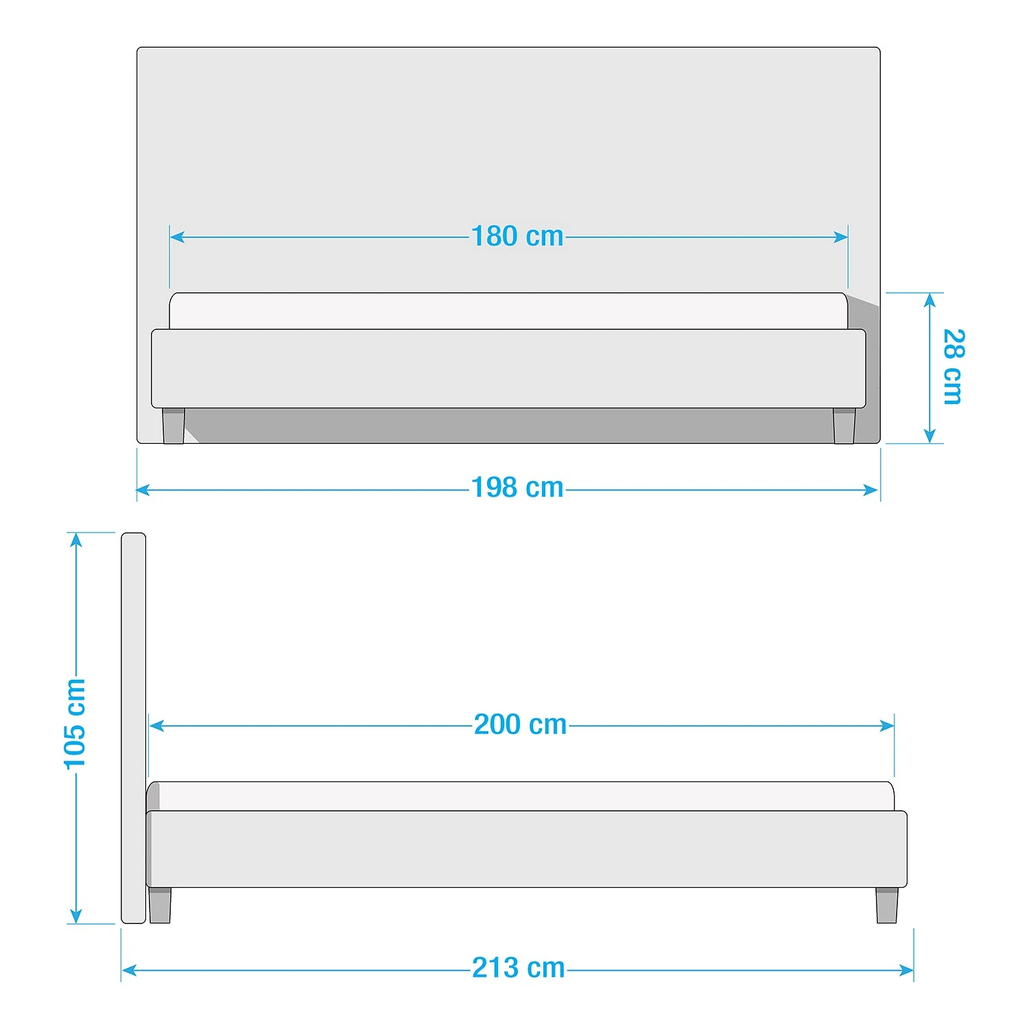 - Weitere Qualitätsmerkmale: Bettgestell mit Kopfteil (ca. 6cm stark aufgepolstertet mit Karosteppung, Einzügen und umlaufender Biese). Liegehöhe durch Metallauflagewinkel 4-fach verstellbar.