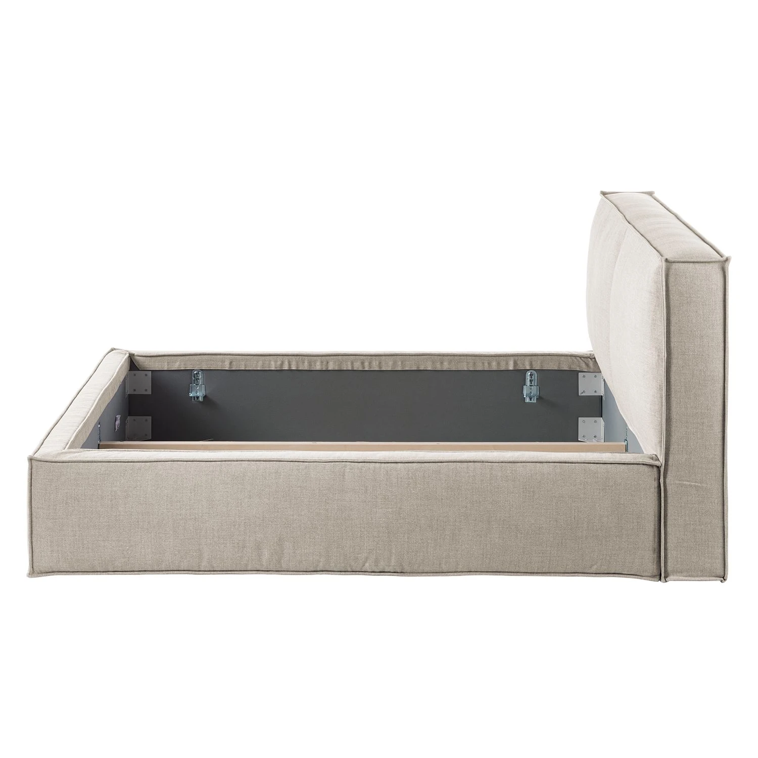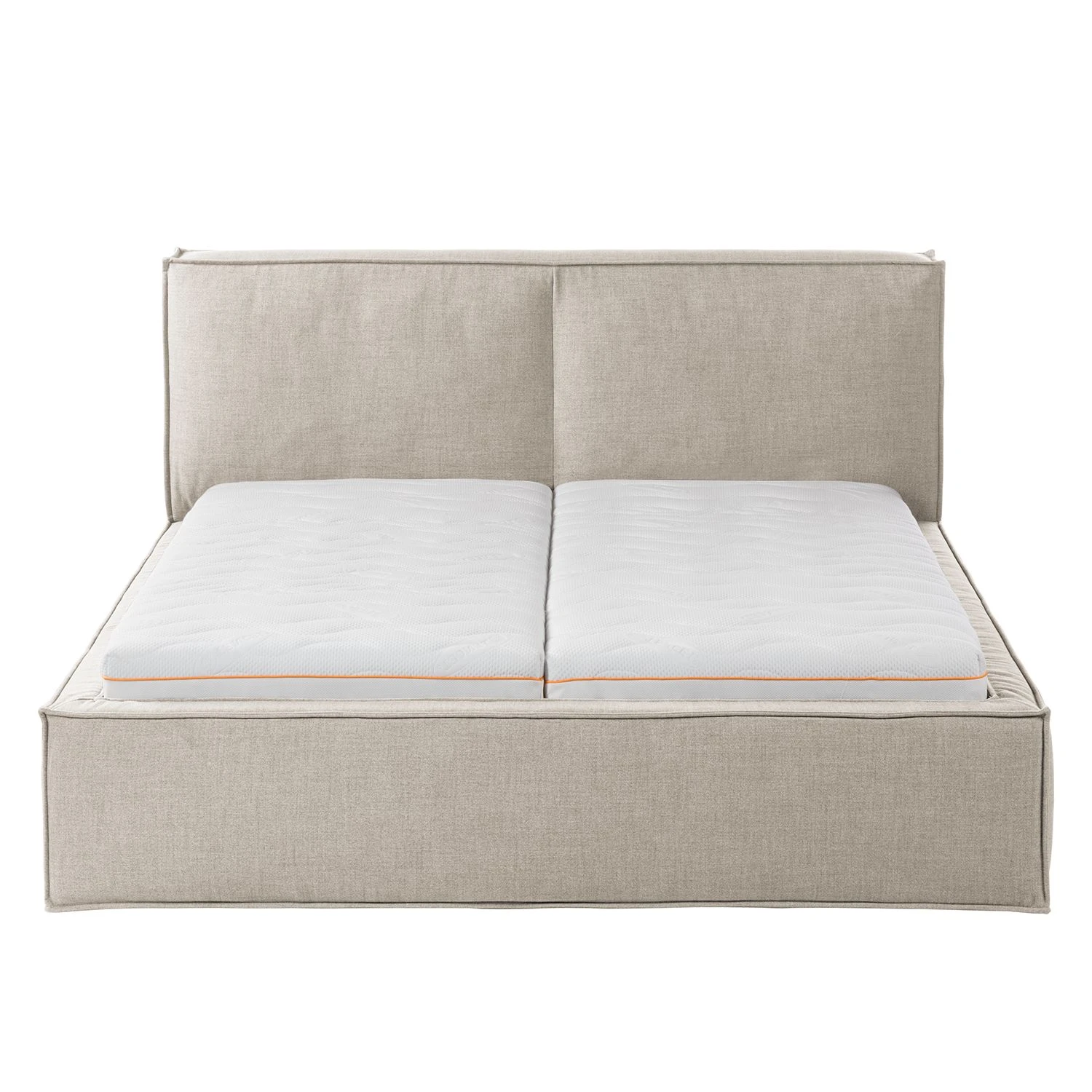 Dem textilbezogenen Polsterbett Kinx sieht man die Gemütlichkeit auf den ersten Blick an. Sein üppig gepolstertes hohes Kopfteil ist super bequem zum Anlehnen beim Lesen, Fernsehen oder Frühstück im Bett. Der rundumlaufende Klettbezug mit Hussen lässt den gesamten Rahmen wie aus einem Stück wirken. Ideal für die Ablage von Smartphone und TV-Fernbedienung ist der breite Rahmen, auf dem man sogar beim Anziehen sitzen kann. Die Einlegetiefe ist vierfach verstellbar, sodass sich das Bett für praktisch alle Matratzen- und Schlafsysteme eignet. Eine echte Wohlfühloase, die zum Highlight jedes Schlafzimmers wird!