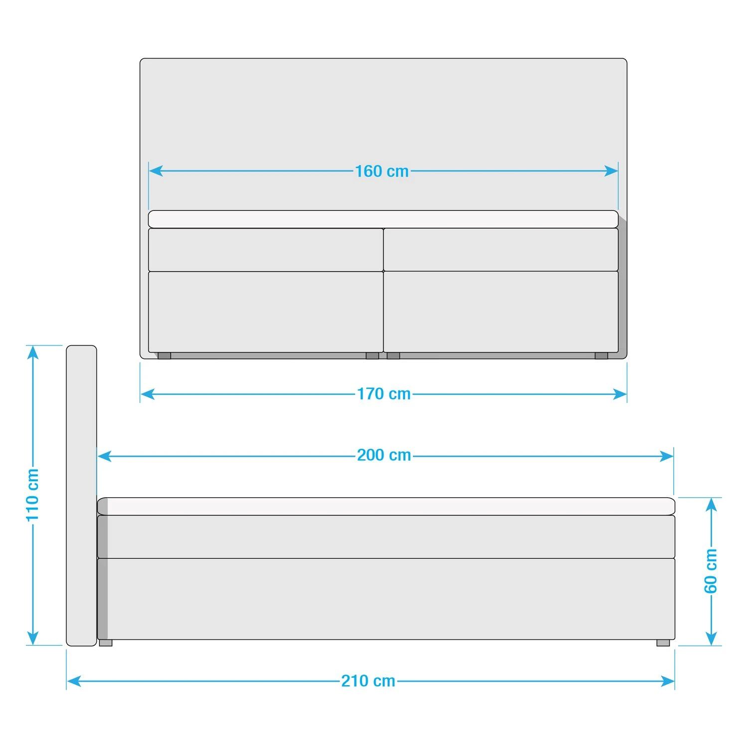 - Lieferumfang: Boxspringbett ohne Topper