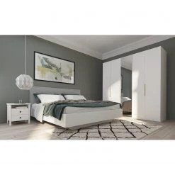 Drehtürenschrank SKØP glass wood – Matt Weiß – Höhe: 236 cm – Breite: 405 cm – Basic