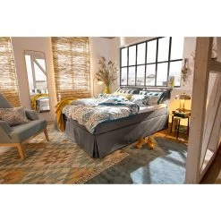 Naturoo Boxspringbett Moneta – Webstoff – Eiche massiv – Grau – 180 x 200cm – Doppelmatratze H2/H3