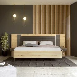 Loftscape Bettgestell Lucy – Inkl. Beleuchtung – Eiche Artisan Dekor / Dunkelgrau Betonoptik