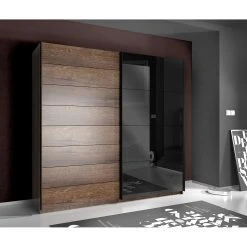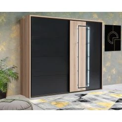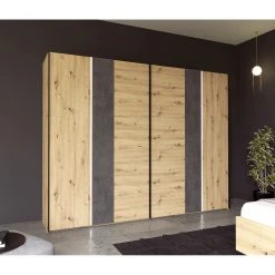 Loftscape Schwebetürenschrank Lucy – Inkl. Beleuchtung – Eiche Artisan Dekor / Dunkelgrau Betonoptik