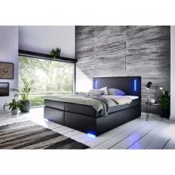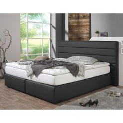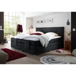 Loftscape Boxspringbett Ingebo Kunstleder – Schwarz – 160 x 200cm – Bonellfederkernmatratze – H2