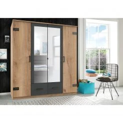 Wimex Drehtürenschrank Detroit – Plankeneiche Dekor / Schwarz