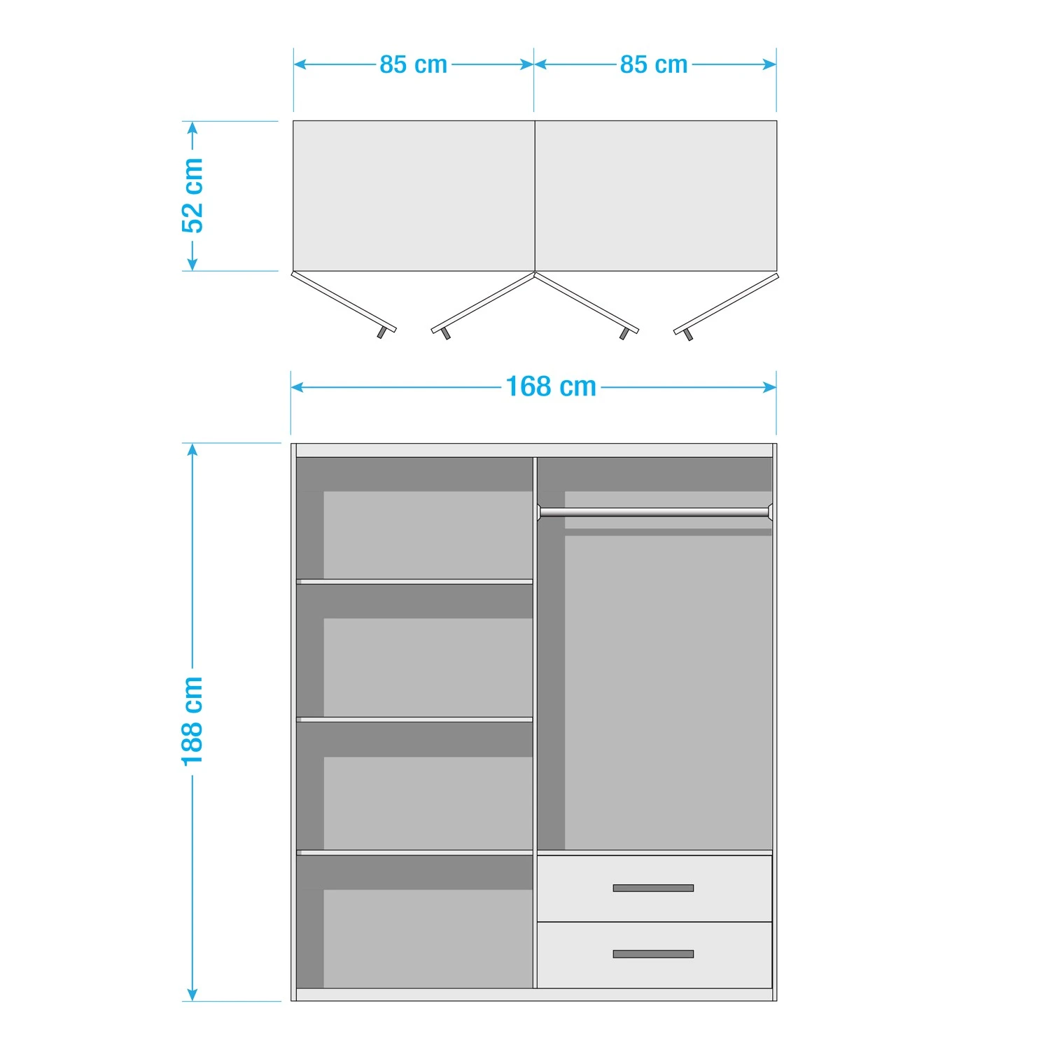 - Innenaufteilung: 85/85 cm