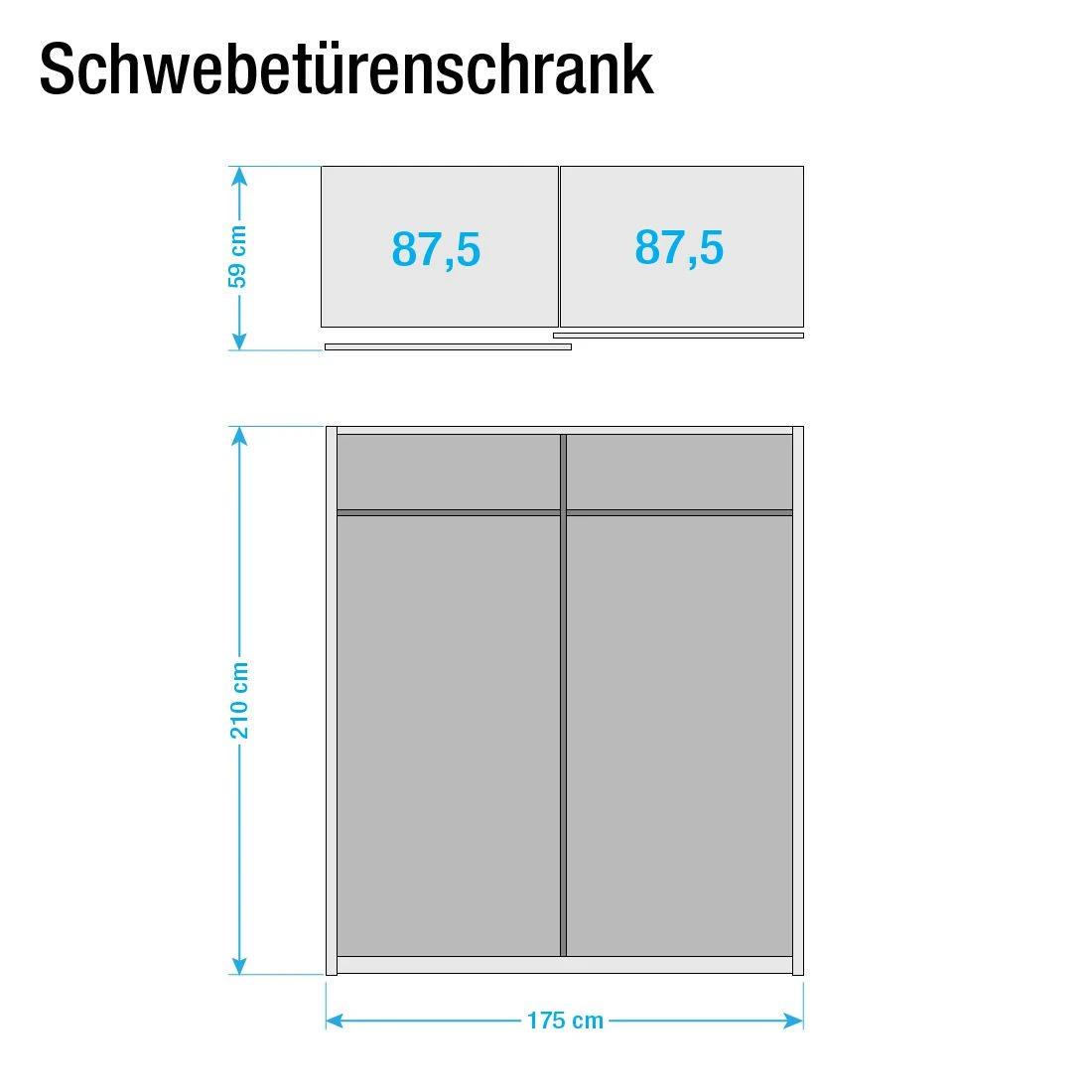 - Höhe 210 cm: Je 1 Fachboden & 1 Kleiderstange pro Schrankelement