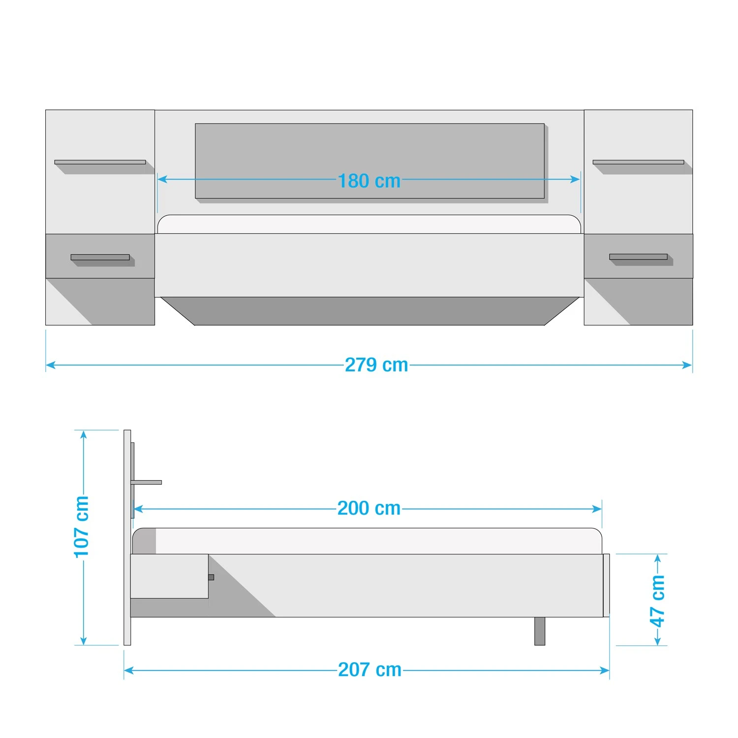 - Bettkantenhöhe: 47 cm