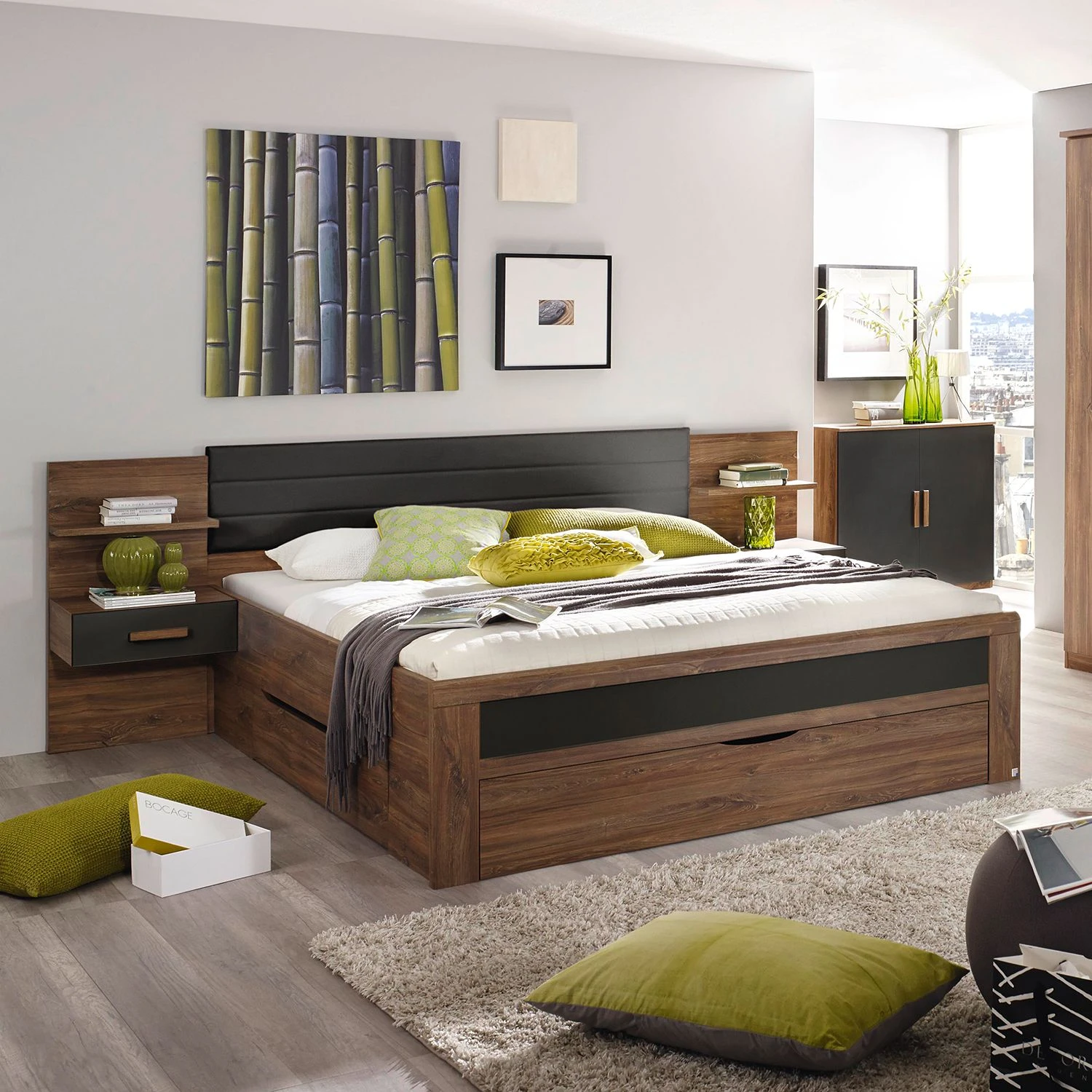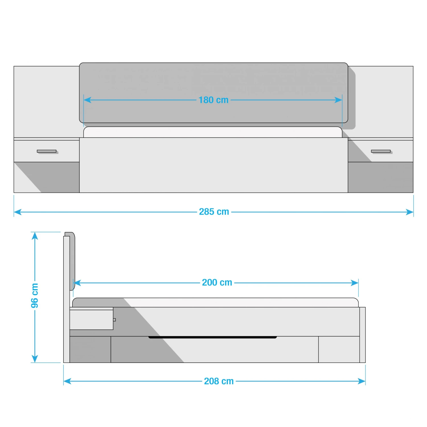 - Bettanlage: bestehend aus Bett, 3 Sockelschubkästen und 2 Nachtkommoden