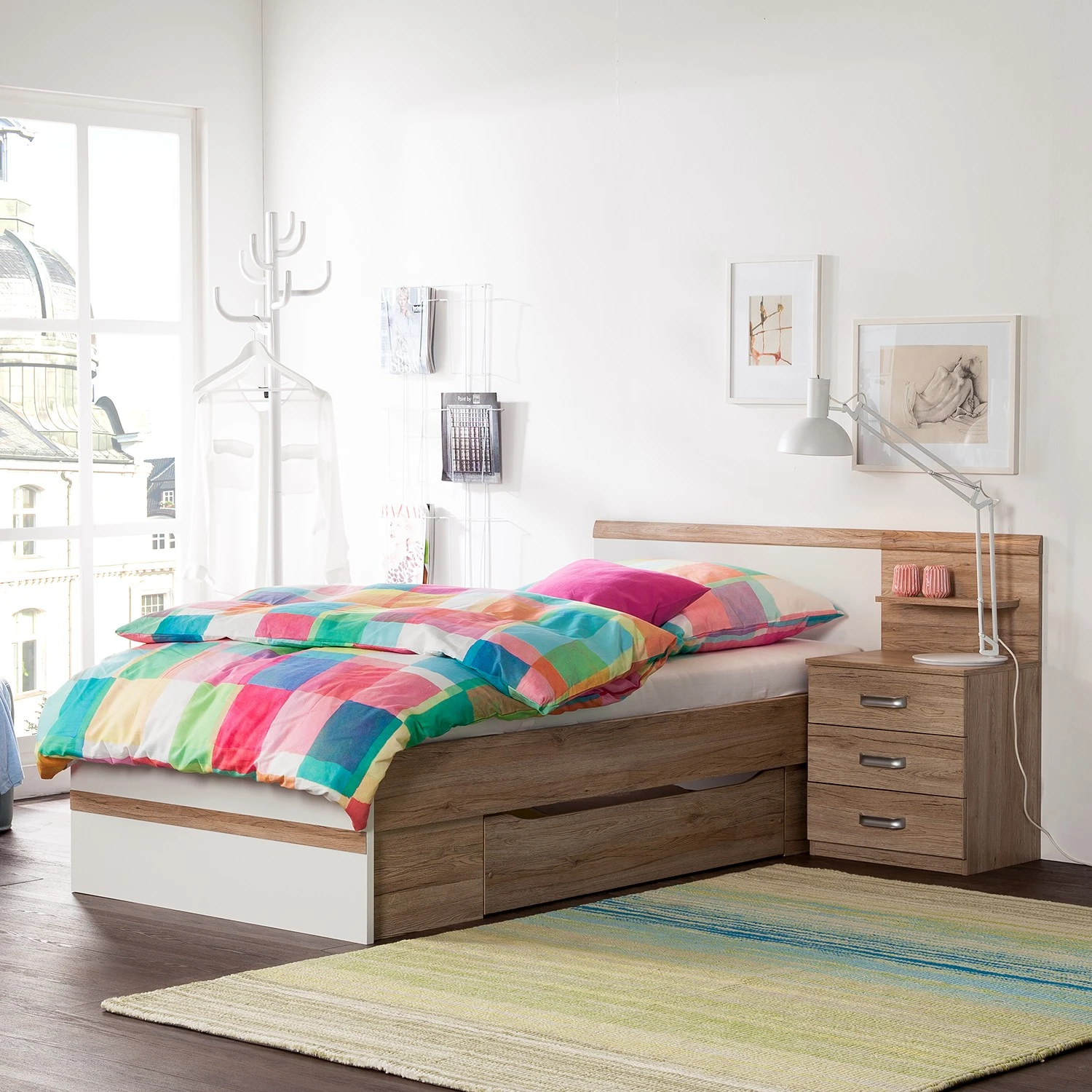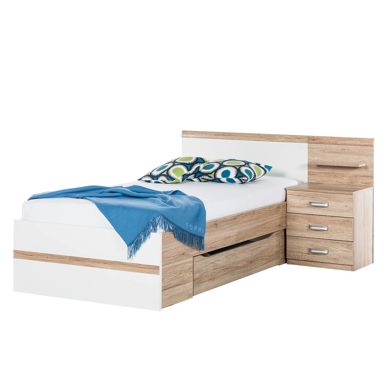 - 1 Bett, 1 Nachtkommode & 1 Sockelschubkasten