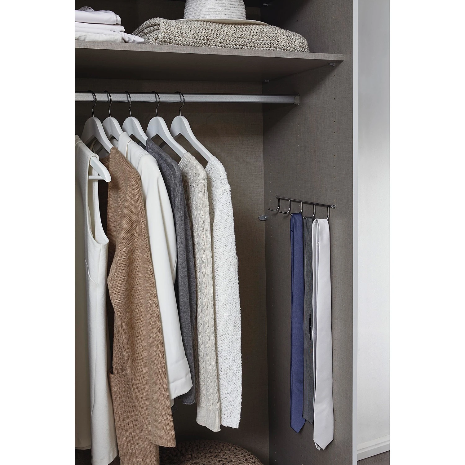 - Lieferumfang: Schwebetürenschrank inkl. 7 Fachböden, 3 Kleiderstangen, 1 Hakenleiste und Türdämpfung