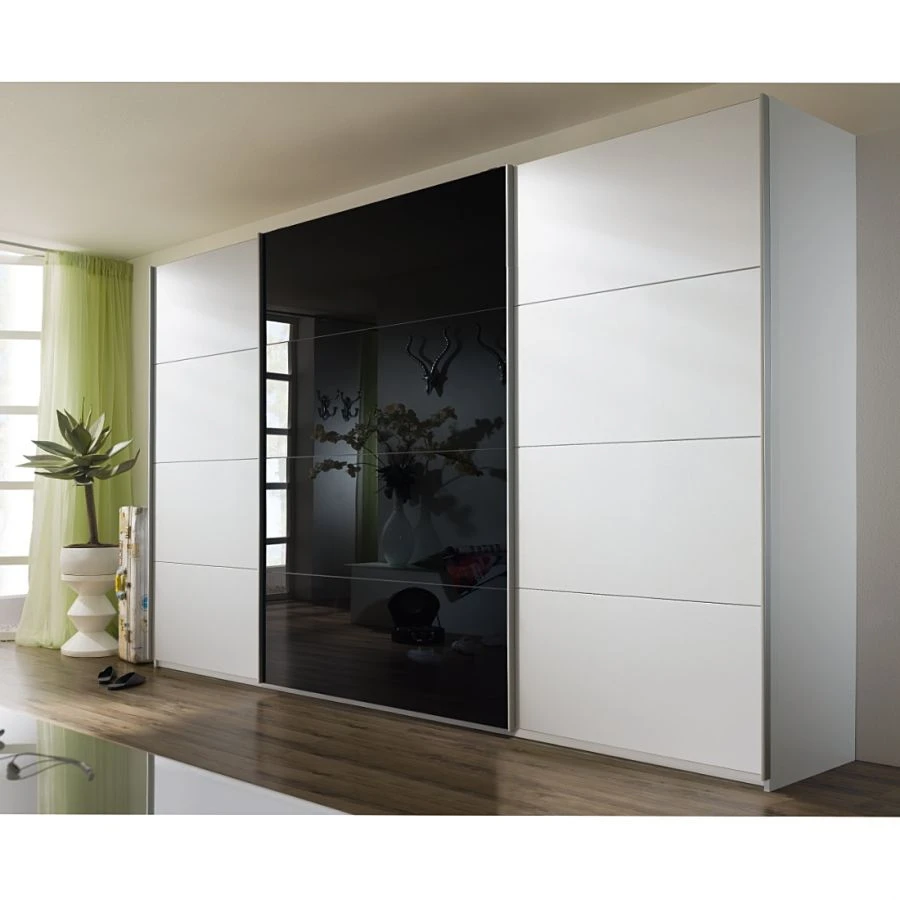 Ausgesprochen gut macht sich dieser weiß-schwarze Schrank von Rauch Pack´s mit einer Kommode. Der Stauraum dieses Modells verbirgt sich hinter 3 Türen. Die Fachböden des Kleiderschranks können Sie ganz nach Ihren Wünschen in der Höhe verstellen.