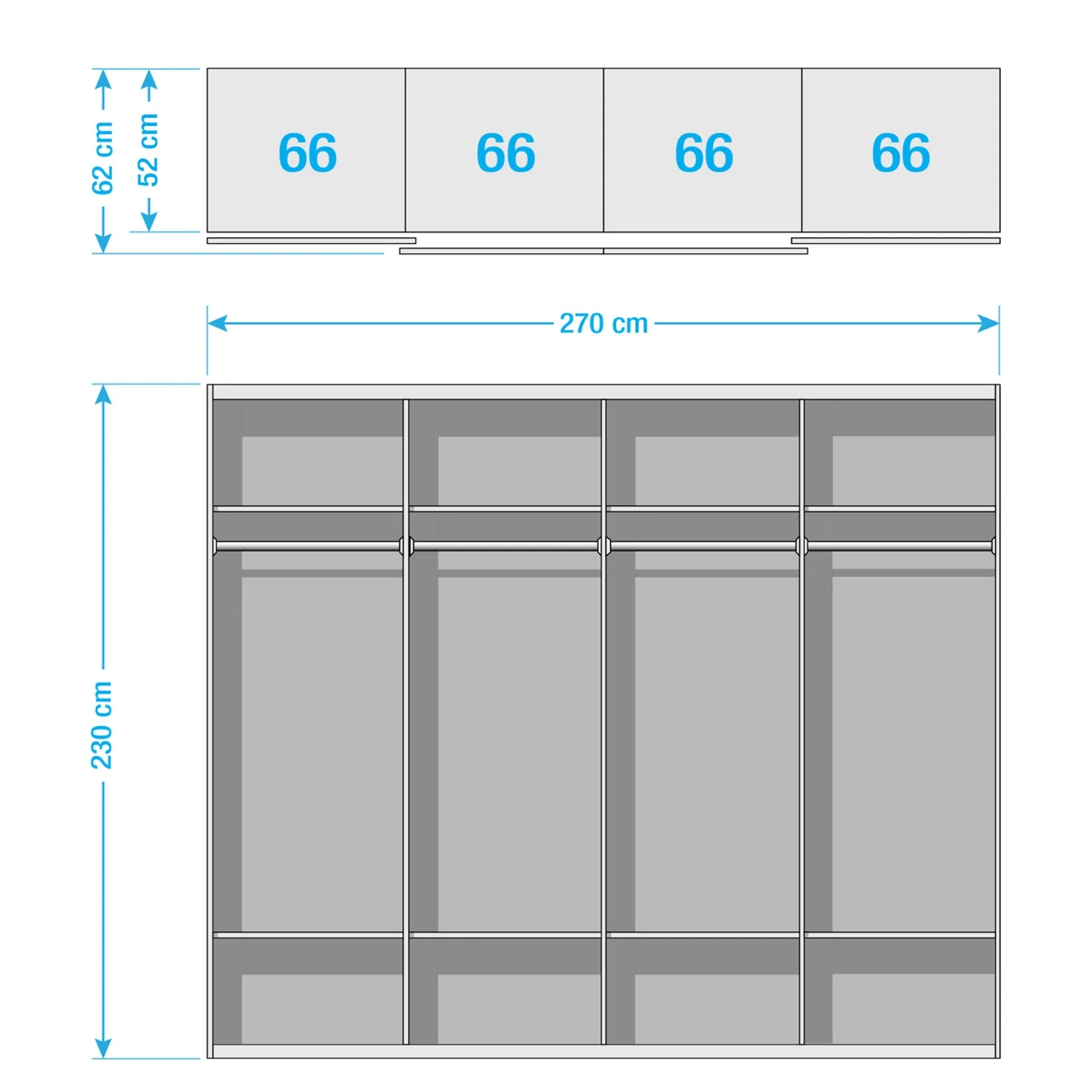 - Lieferumfang: Schwebetürenschrank inkl. Innenausstattung & ohne Dekoration