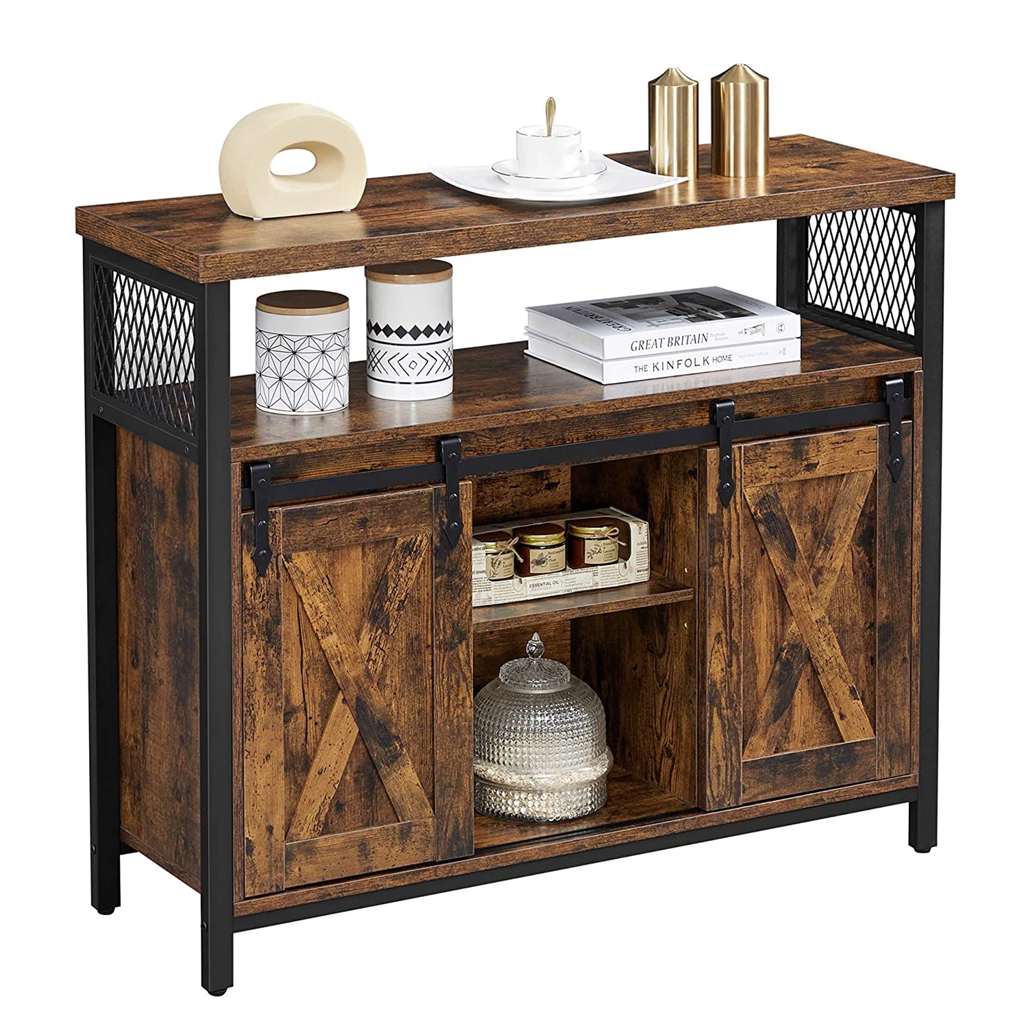 Red Living Kommode Hazlet II – Braun / Schwarz