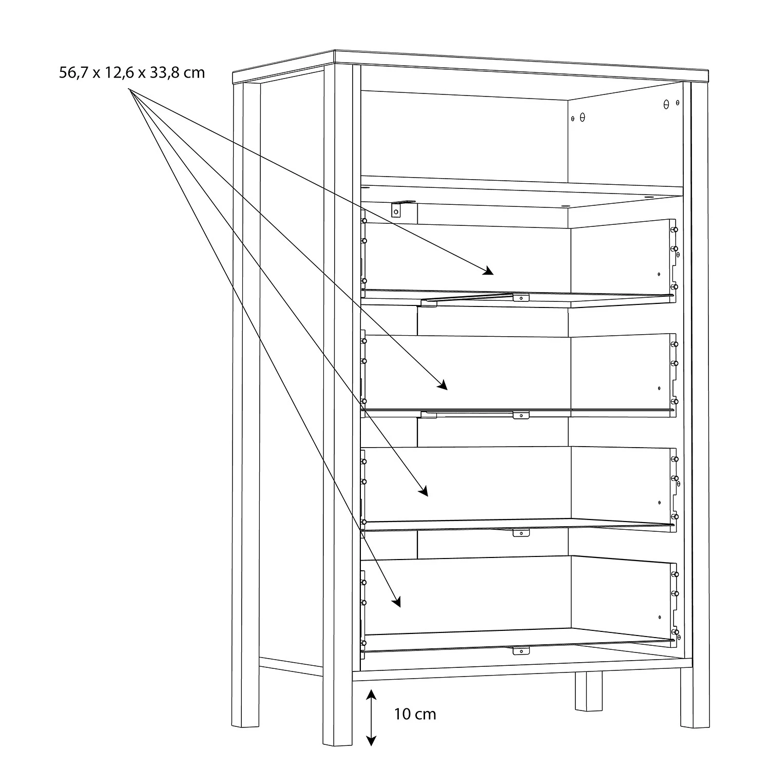 - Innenmaße Schubladen: 56,7 x 33,8 cm