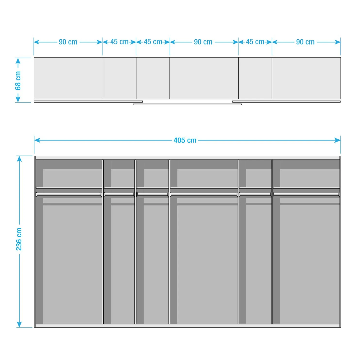 - Inneneinteilung: 90/45/45/90/45/90 cm