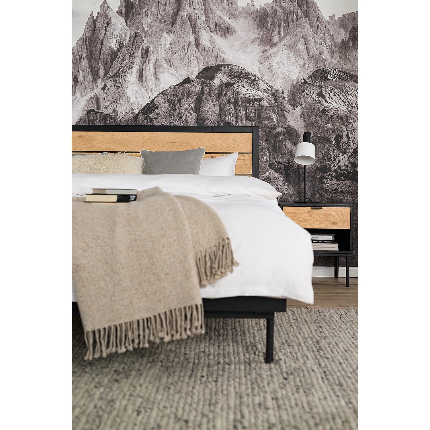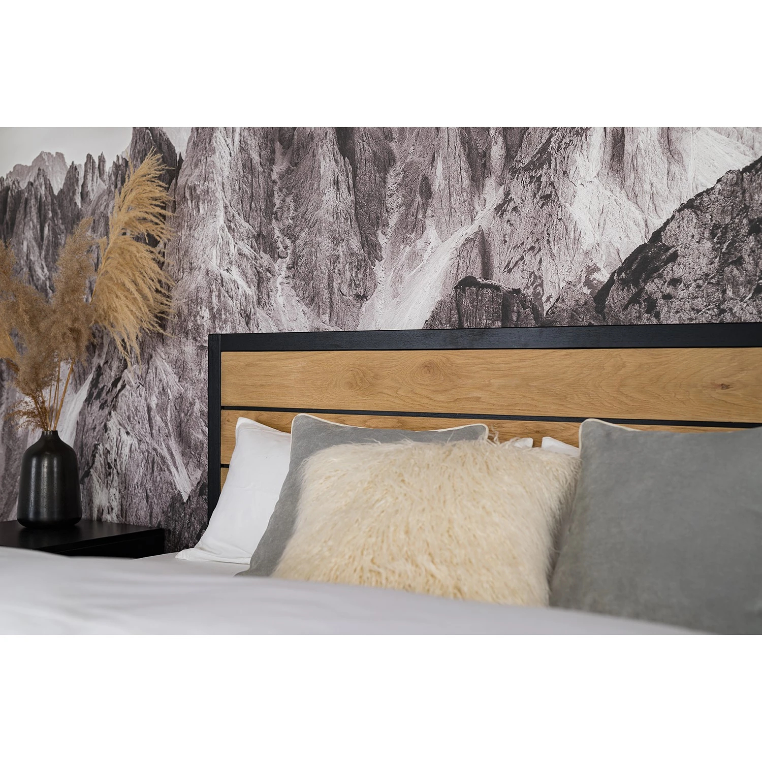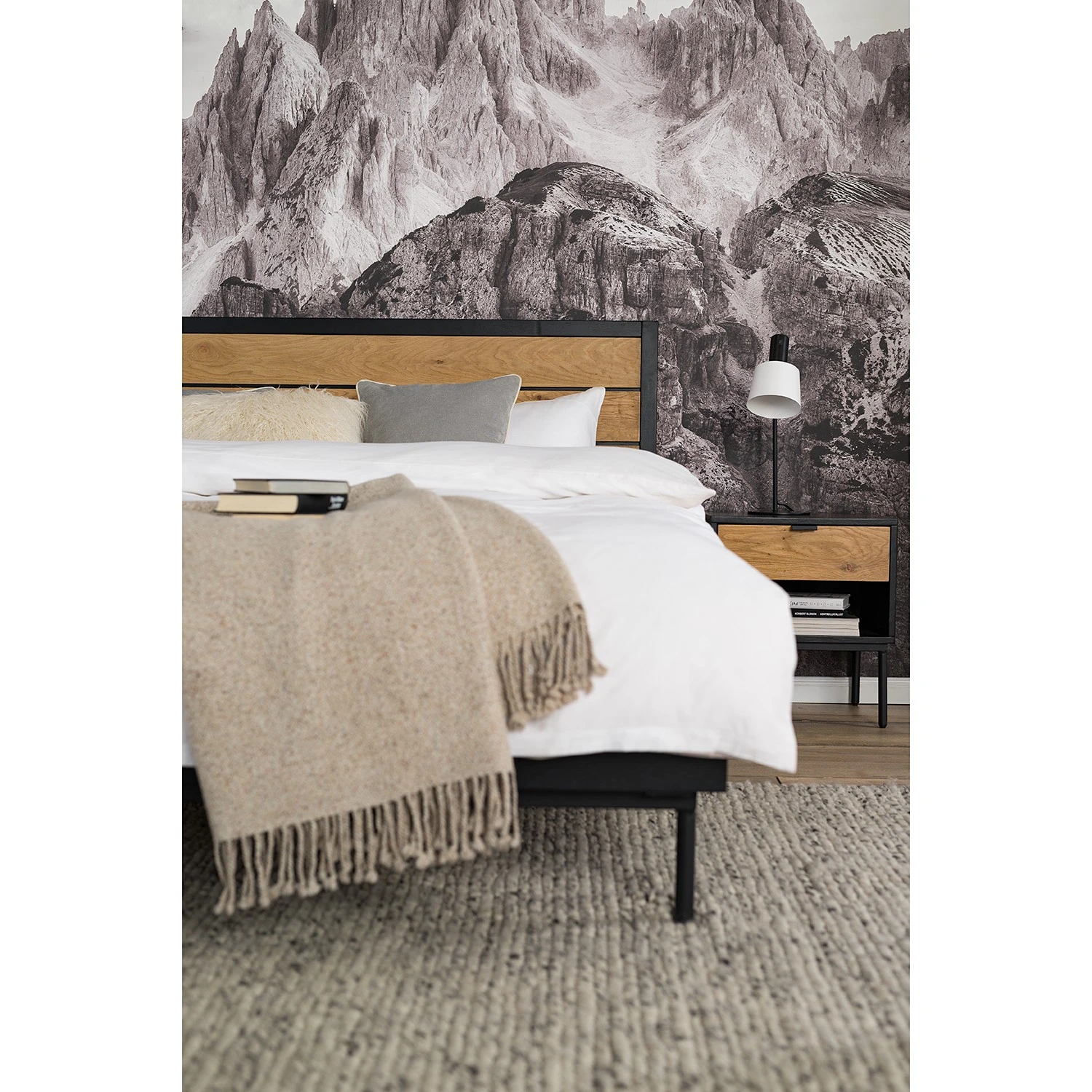 - Kopfteil: MDF (Mitteldichte Holzfaserplatte), furniert & geölt