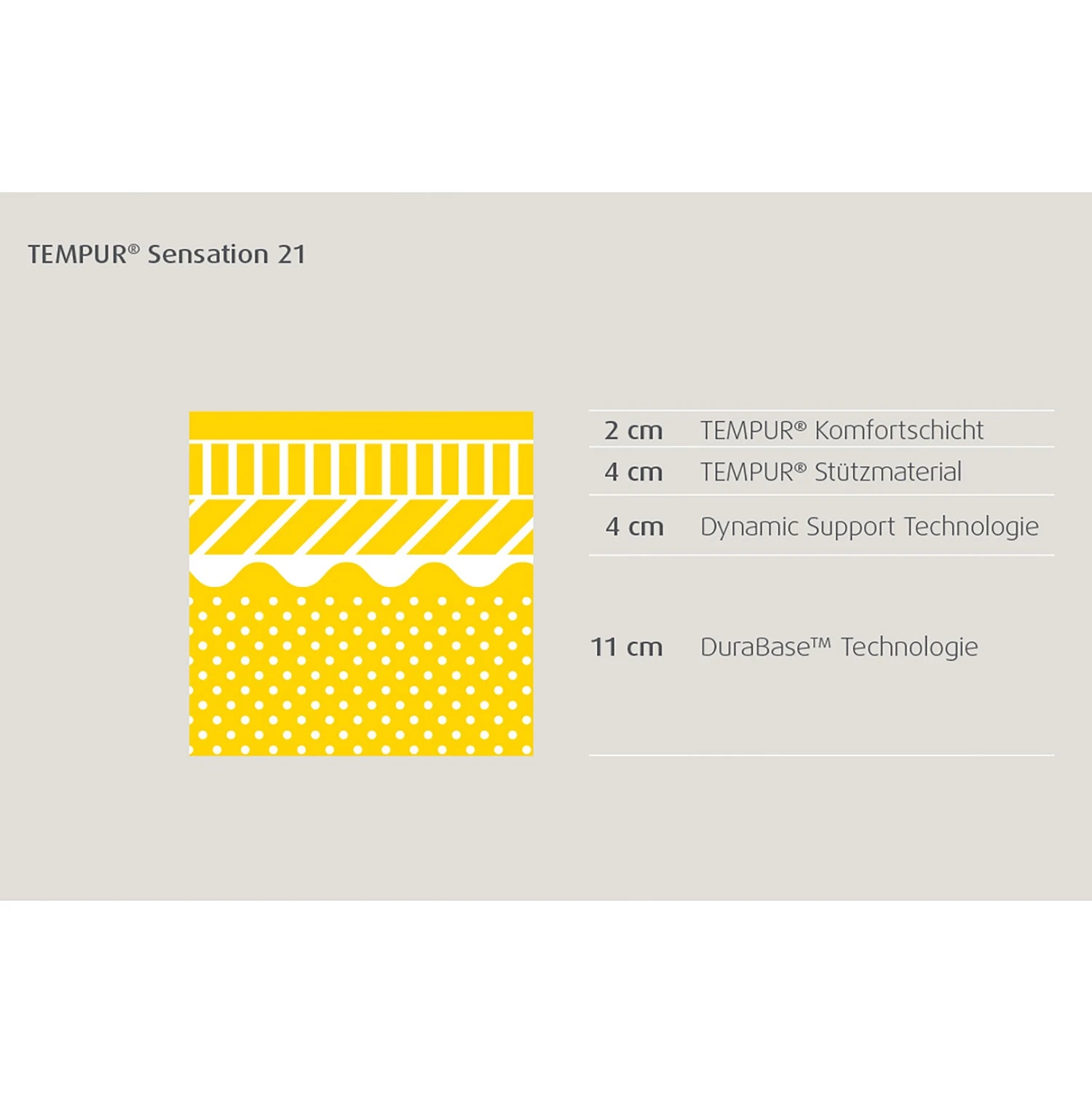 - Schicht 2: 4 cm TEMPUR® Dynamic Support-Technologie mit druckentlastende Eigenschaften
