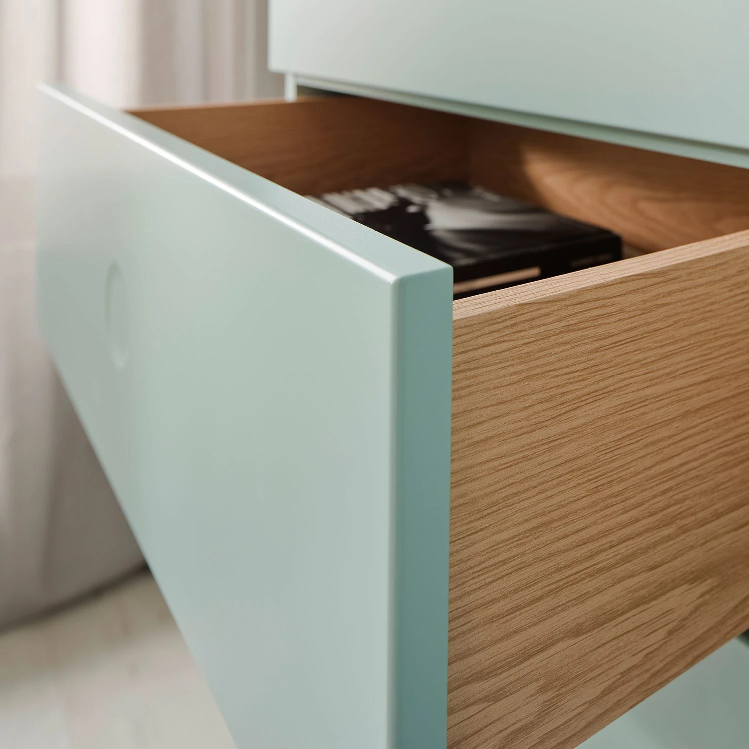 - Front: MDF (Mitteldichte Holzfaserplatte), lackiert