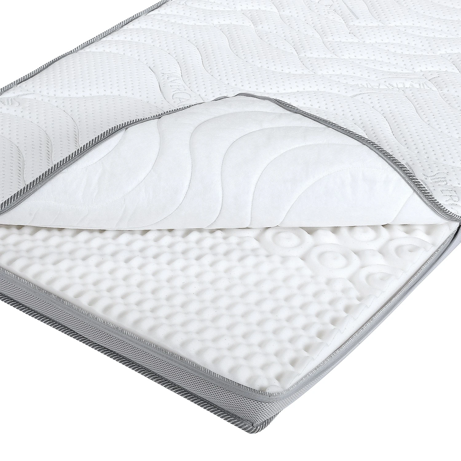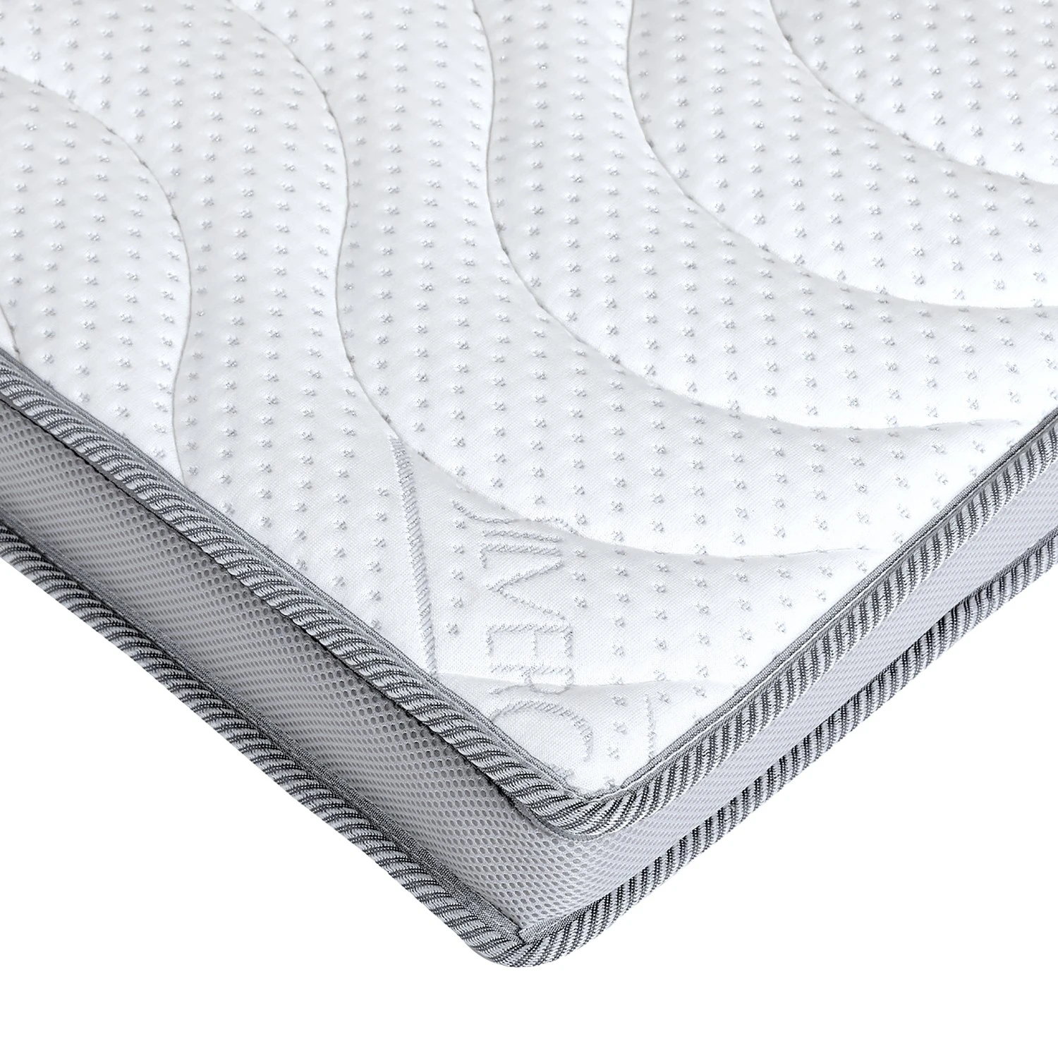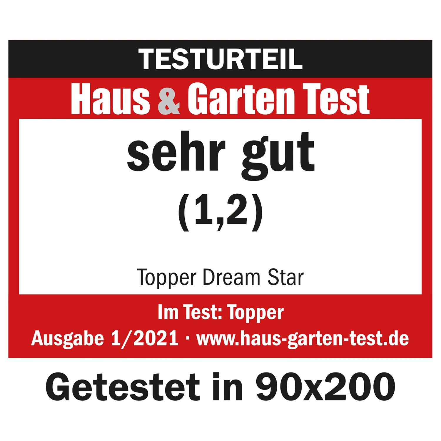 Dieser luxuriöse und softe Topper besticht durch seinen tollen Komfort – eine Bereicherung für jede Matratze! Von Haus & Garten mit „sehr gut“ bewertet (Note 1,2 Ausgabe 01/2021, Größe 090x200cm getestet). Der verwendete Komfortschaum ist medium fest, hoch anschmiegsam und dabei sehr atmungsaktiv. Der Doppeltuch-Bezug „Silvercare“ hat eine antibakterielle Funktion und ist beidseitig mit Klimafaser versteppt. Er ist über den 4-Seiten-Reißverschluss abnehmbar und kann bei 60° in der Maschine gewaschen werden. Alle Materialien sind schadstoffgeprüft nach Ökotex-Standard 100. Der Topper wird gerollt geliefert und benötigt ca. 24 Stunden um sich voll zu entfalten.