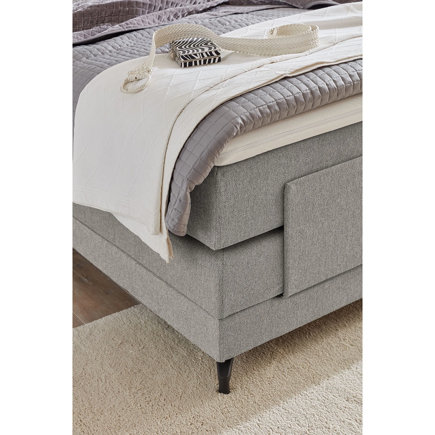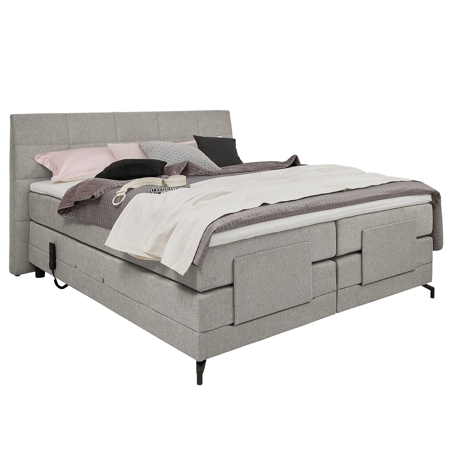 - Lieferumfang: Boxspringbett inkl. 2 Matratzen, 2 Topper und Motor, ohne Dekoration