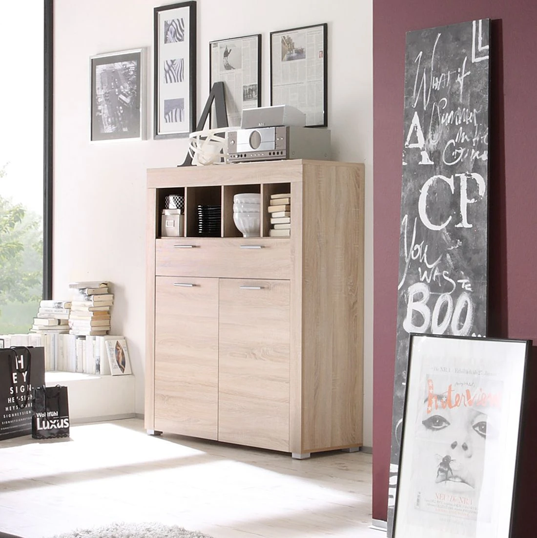 - Gelungener Mix aus Stauraum und dekorativer Optik