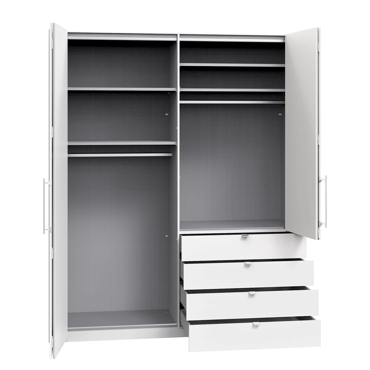 - Lieferumfang: Kleiderschrank, Innenausstattung pro Fach: 2 Einlegeböden und eine Kleiderstange