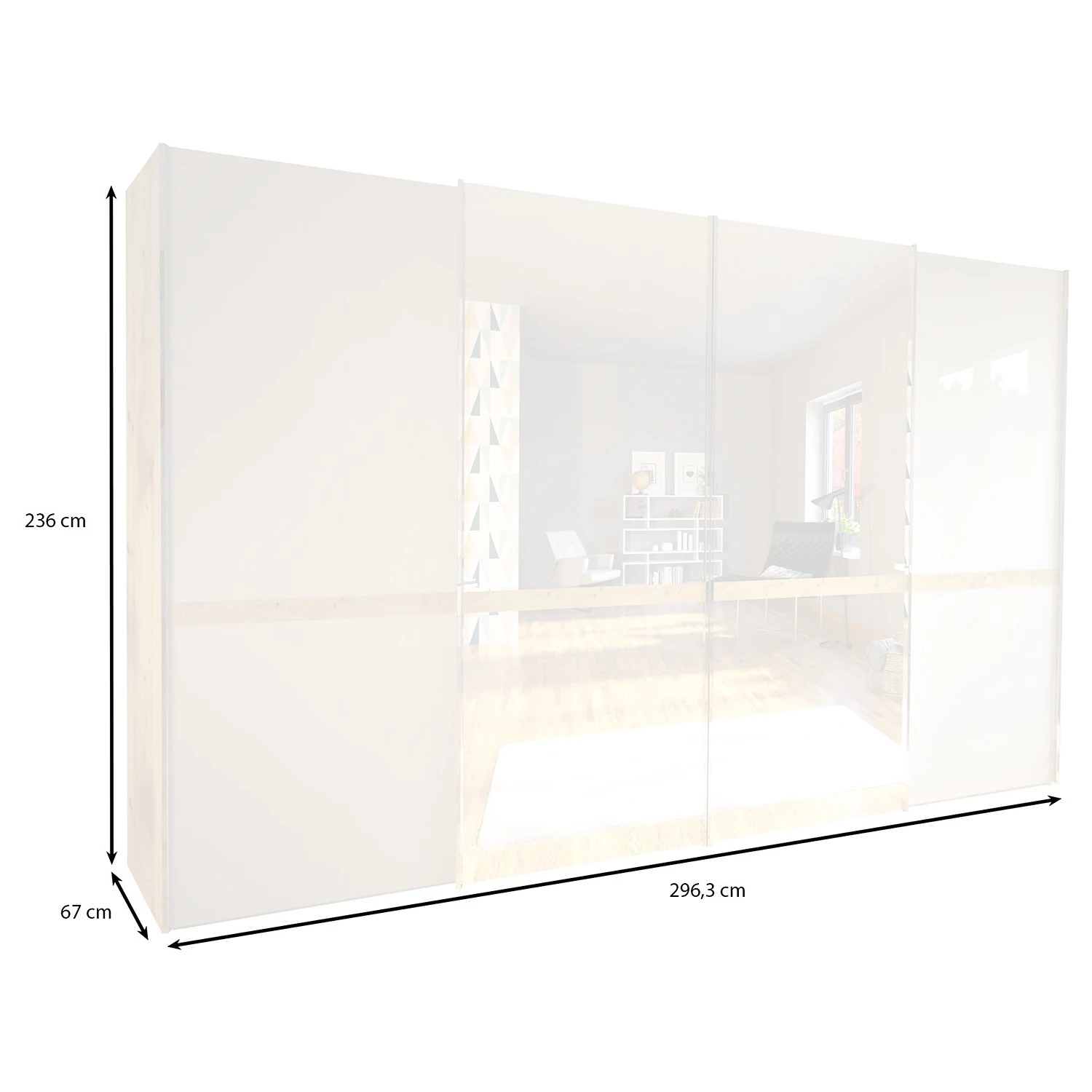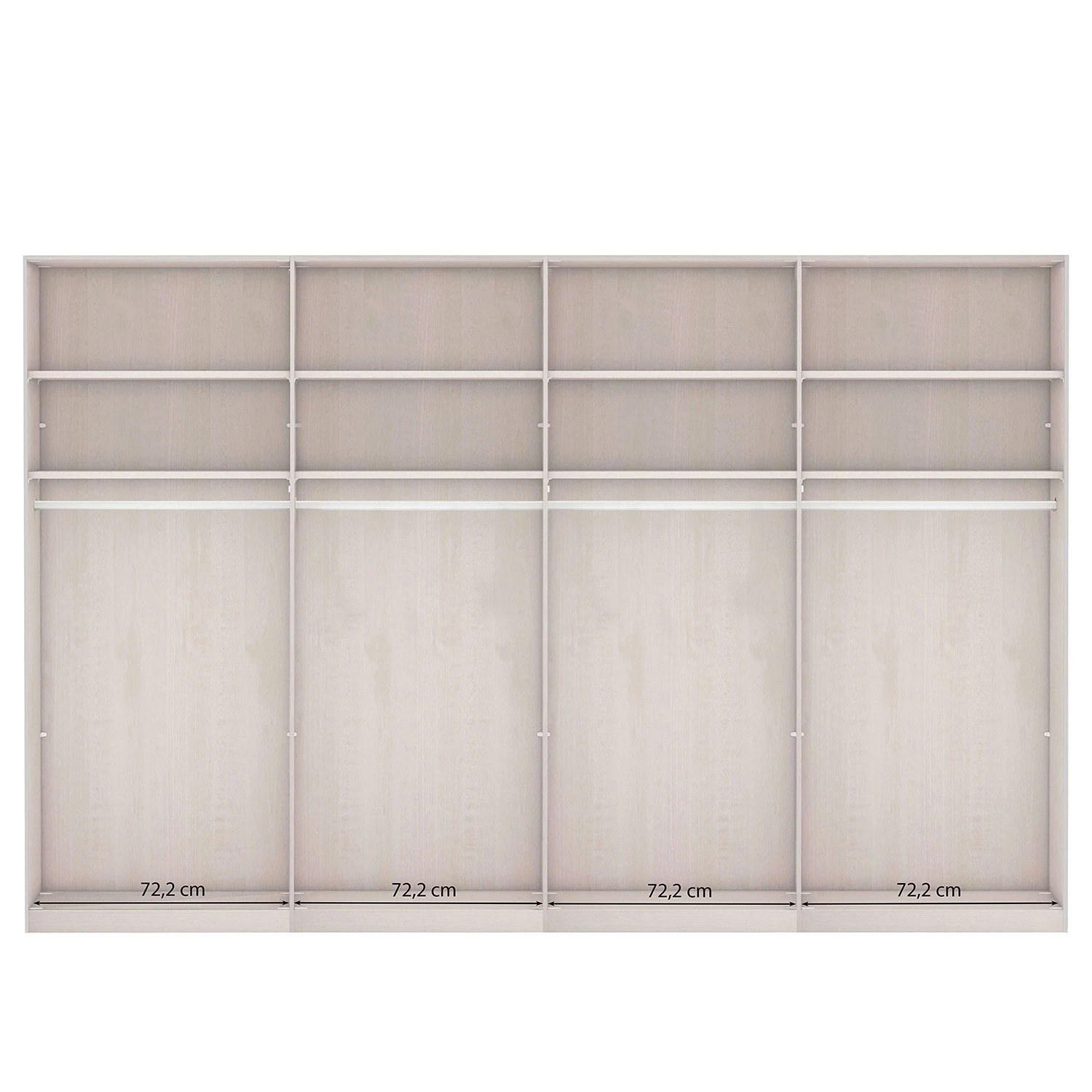 - Lieferumfang: Schwebetürenschrank inkl. 8 Einlegeböden und 4 Kleiderstangen, ohne Dekoration