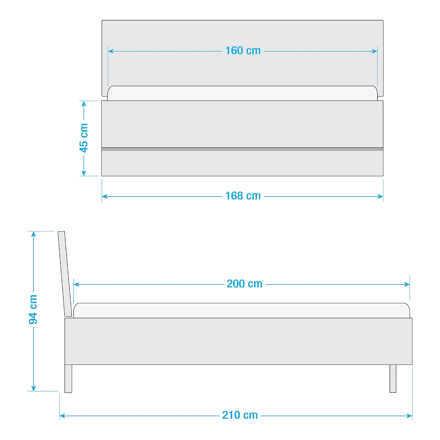 - Bettkantenhöhe: 45 cm