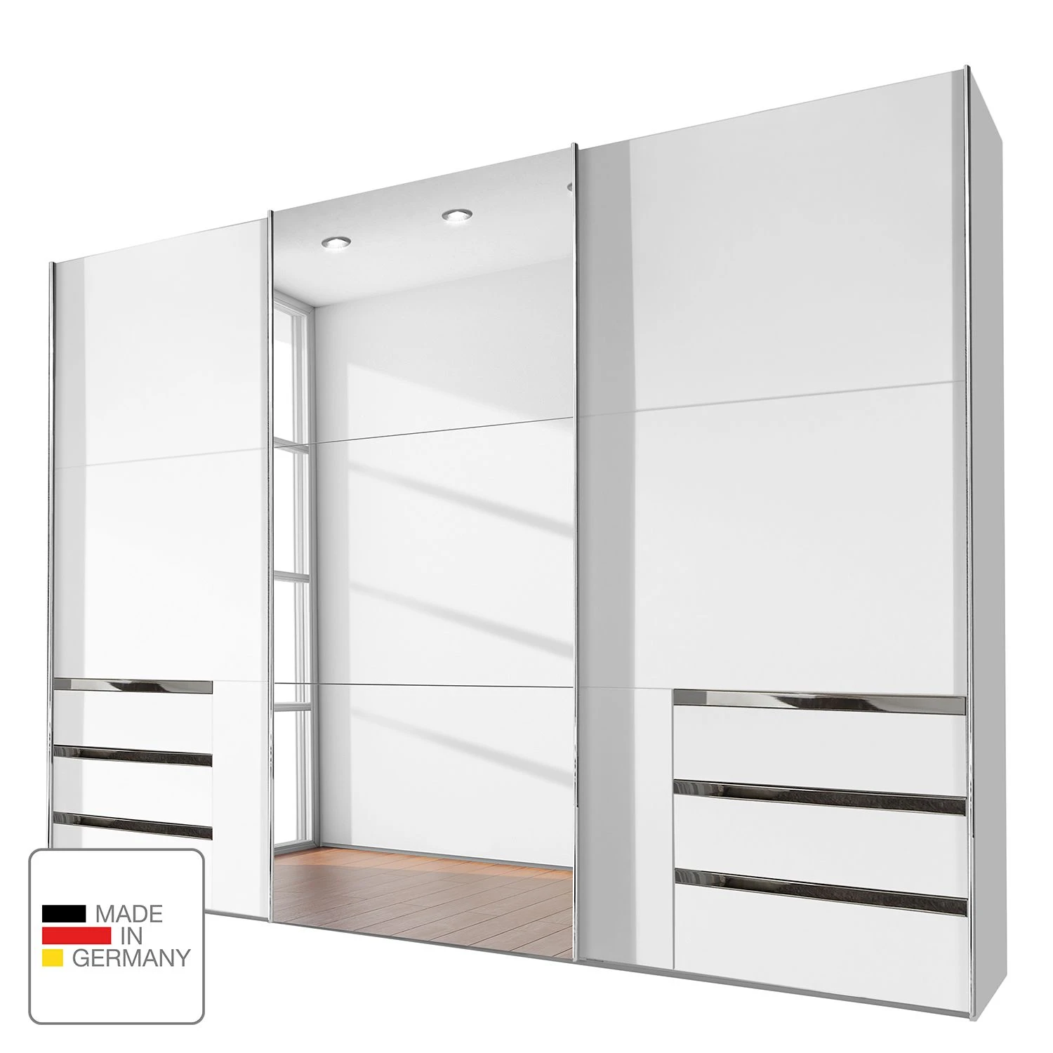 - Lieferumfang: Schwebetürenschrank ohne Dekoration